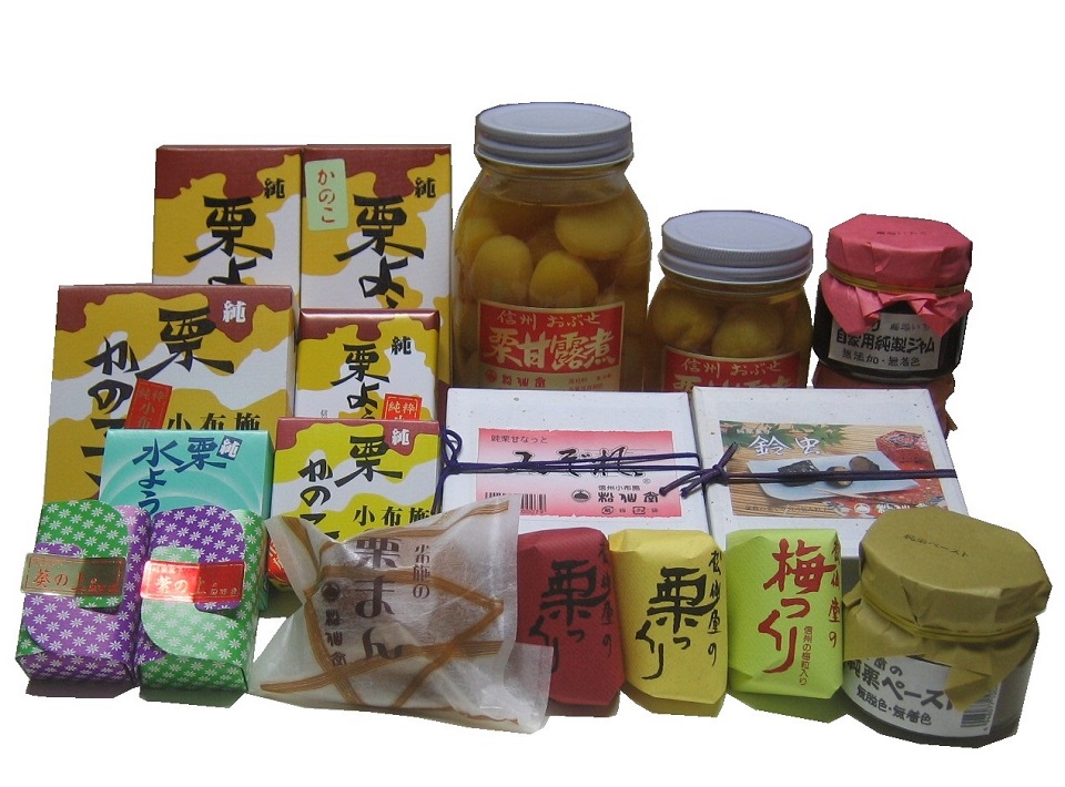 国道沿いの趣のある大きな暖簾が目印。栗菓子の定番といえば栗鹿ノ子ですが、小布施堂の栗鹿ノ子は栗と砂糖だけを使い、“ほくほく食感と素朴な甘さ”、“蜜のような濃厚な味わい”、“なめらかでみずみずしい甘さ控えめ”と3種類の味に仕上げるなど、随所にこだわりがうかがえる栗菓子が揃います。
